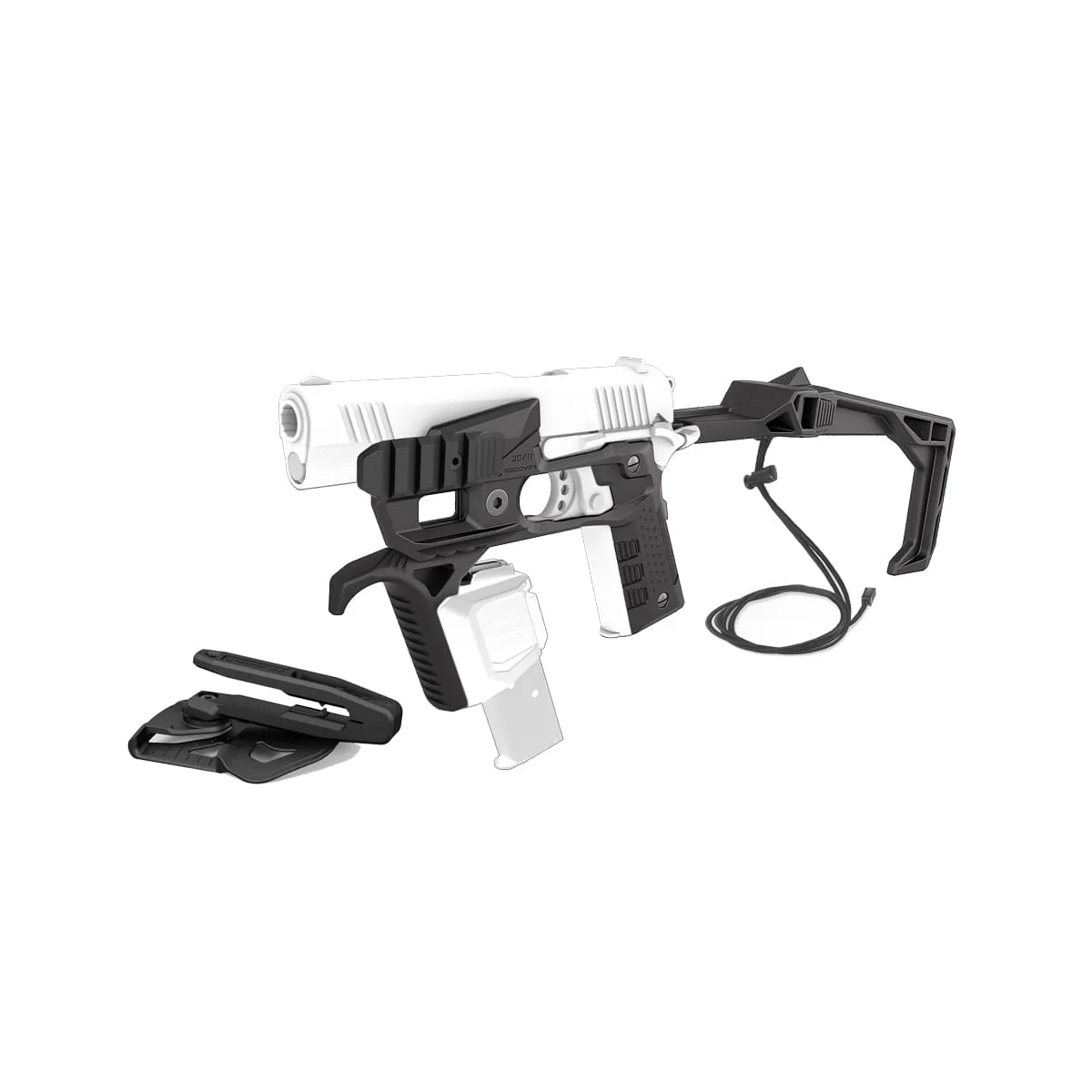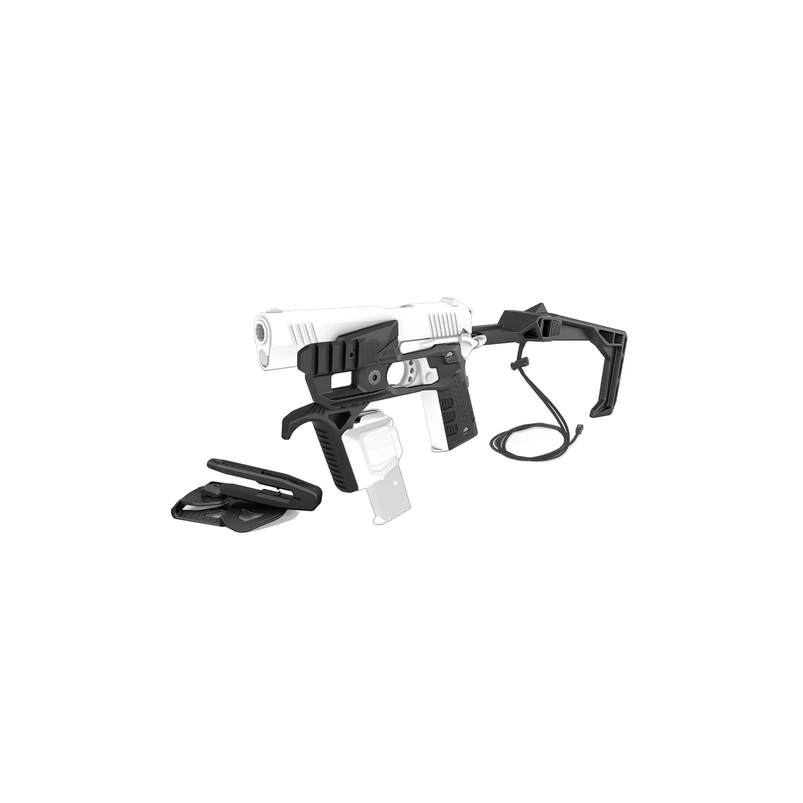 Conçu pour tous les 1911 Full Size qui n'ont pas de rail. Kit comprenant : - Cadre Stabilisateur - Harnais minimaliste - Holster G7 (sans adaptateur pour pistolet) - FG20 Poignée avant coudée - Rail supérieur UR20 - Rails latéraux SR20 (2 inclus)