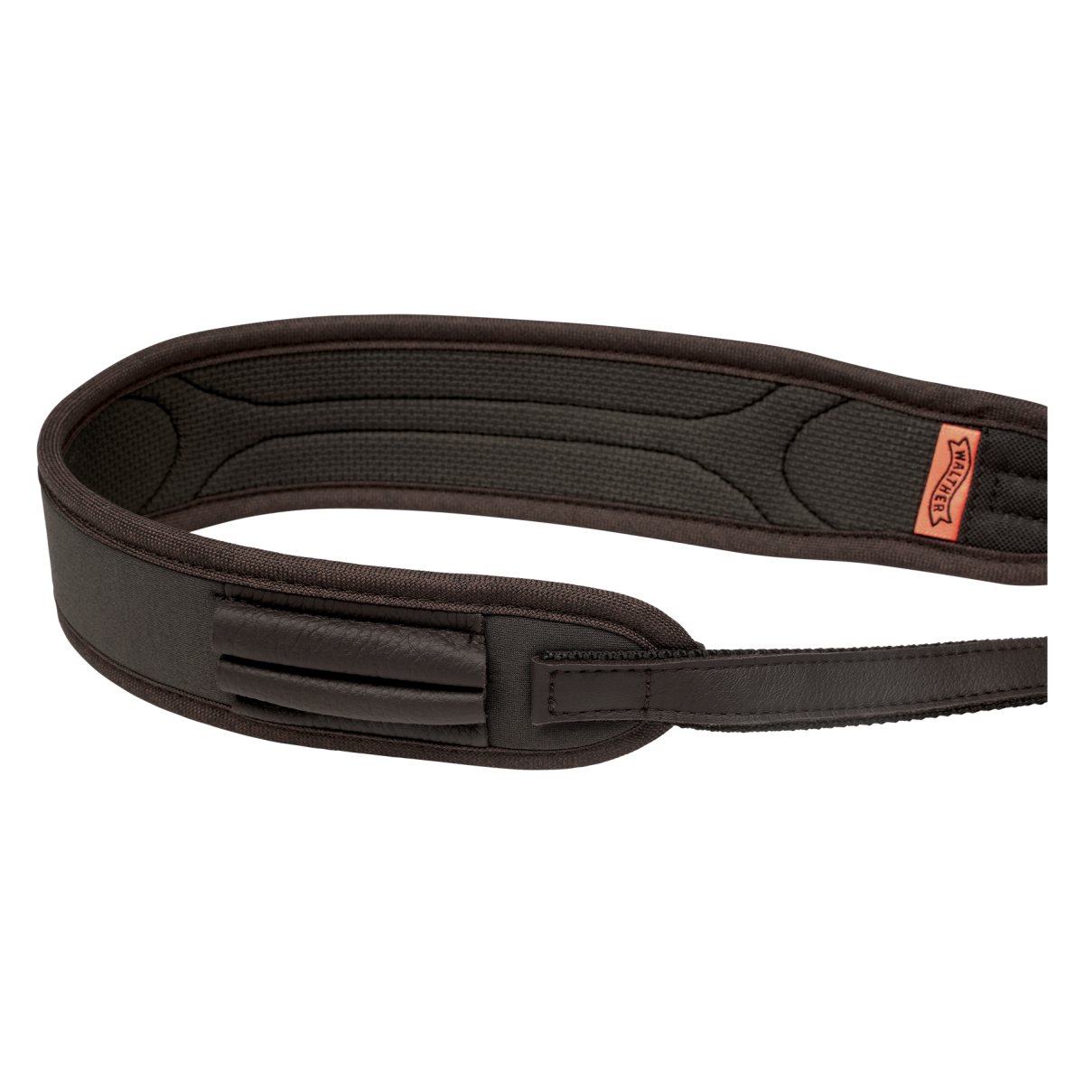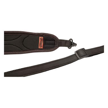 La bretelle Walther RS3 en cuir anthracite associe confort, fonctionnalité et finition soignée. Elle est réalisée en néoprène antidérapant, combiné à du cuir, permettant un excellent maintien sur l'épaule et une grande durabilité, avec une finition élégante en gris Walther. Les attaches pivotantes protégées contre la corrosion permettent une fixation rapide et sécurisée par simple clic, avec un démontage instantané par pression sur un bouton. La bretelle intègre des passants pour deux cartouches de rechange, toujours accessibles. Elle conserve une élasticité suffisante pour accompagner les déplacements les plus exigeants, tout en assurant un port confortable. Les boucles en polymère à réduction de bruit évitent les claquements et protègent l'arme des rayures.