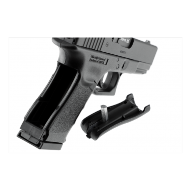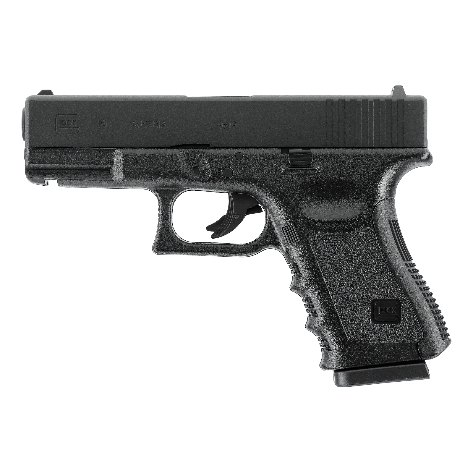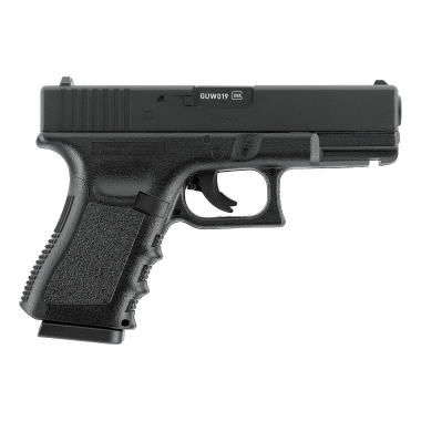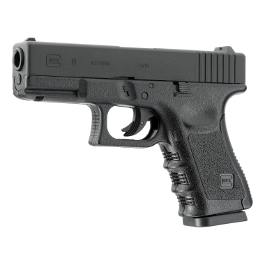 Compacte et maniable, la réplique CO2 du Glock 19 conserve l'allure caractéristique du modèle d'origine. Avec une longueur de 186 mm, il tire des billes acier de 4,5 mm avec une énergie pouvant atteindre 3 joules. Son poids de 717 g, associé à sa culasse métallique, assure une prise en main réaliste.