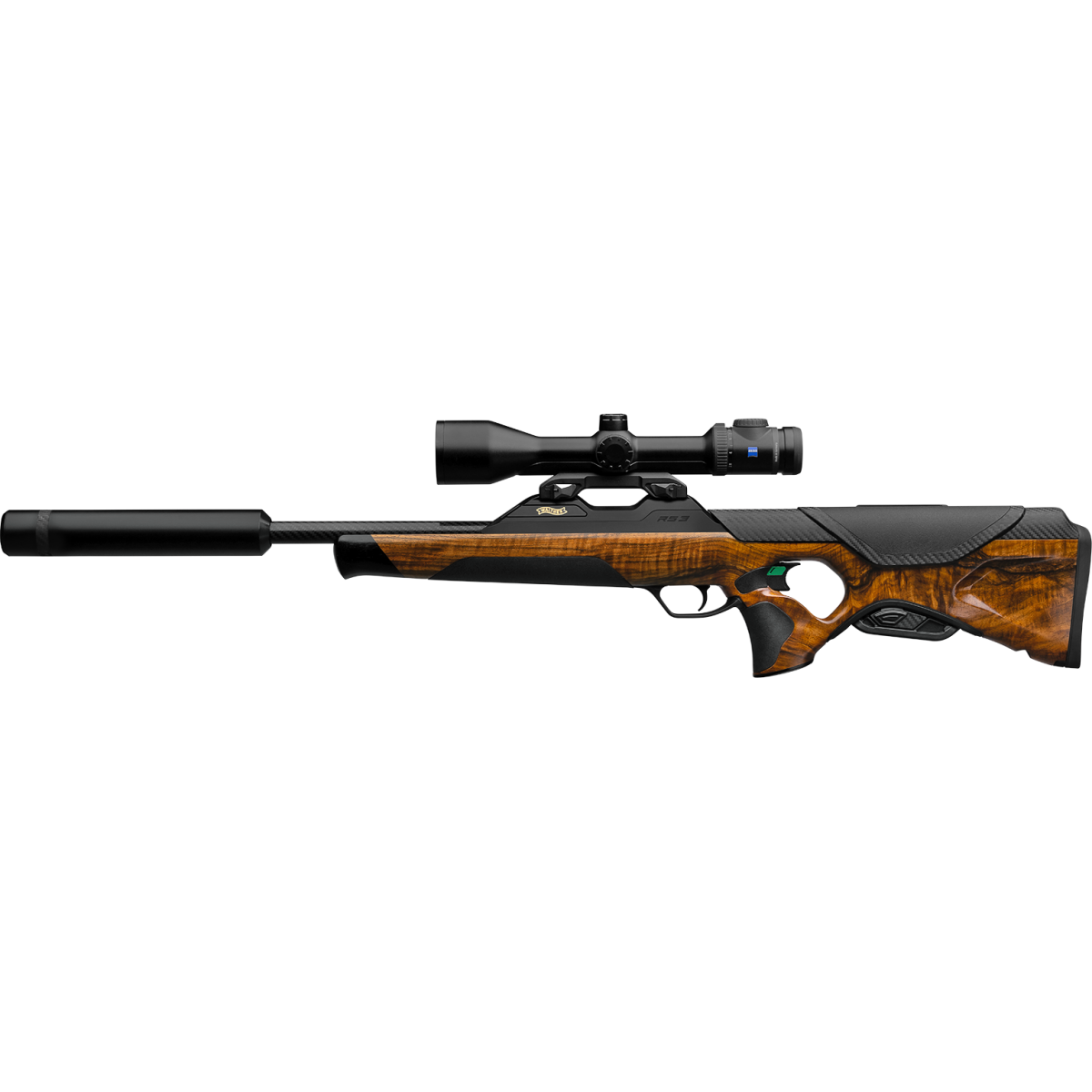La Walther RS3 Heritage Sevenstar est une carabine de chasse moderne dotée d'une crosse en noyer Grade 7 finition satinée mate, intégrant des inserts en élastomère noir pour une prise en main optimale. Son design contemporain et sa plateforme entièrement repensée marquent l'entrée de Walther dans l'univers de la chasse. Sa conception Bullpup, associée à un réarmement linéaire ultra fluide, offre une compacité exceptionnelle et une maniabilité remarquable, tout en garantissant un rechargement rapide et intuitif : arme épaulée et ligne de visée constamment conservée. La sécurité est renforcée par un armeur manuel positionné à l'arrière de la poignée, assurant un contrôle total et immédiat. Le boîtier monobloc intégré en aluminium haute résistance, inspiré de la F1, garantit rigidité, stabilité et précision durable. Livrée avec un silencieux Walther QSA à fixation rapide Zerolock : montage et démontage sécurisé par rotation de 60°.