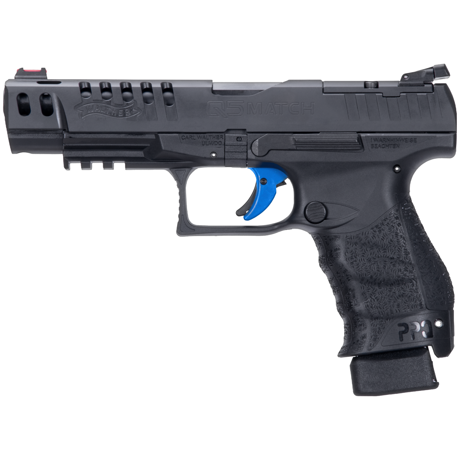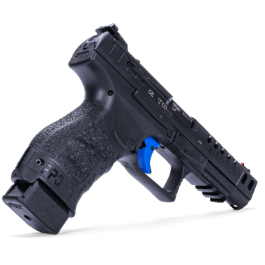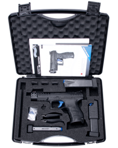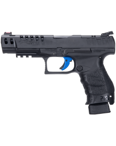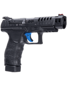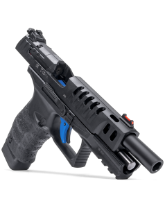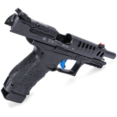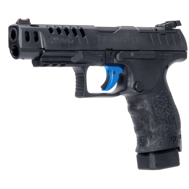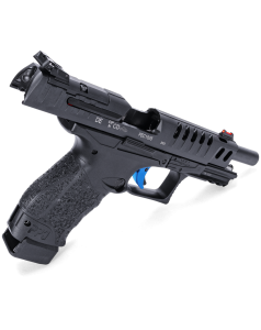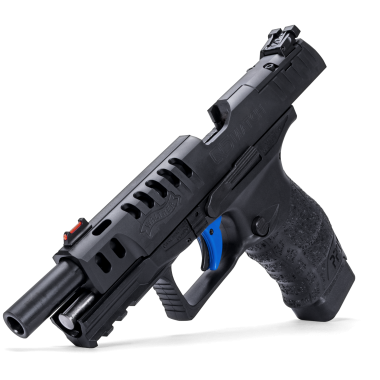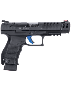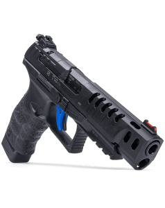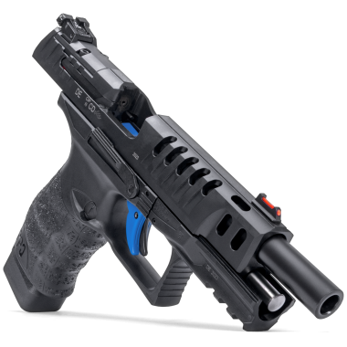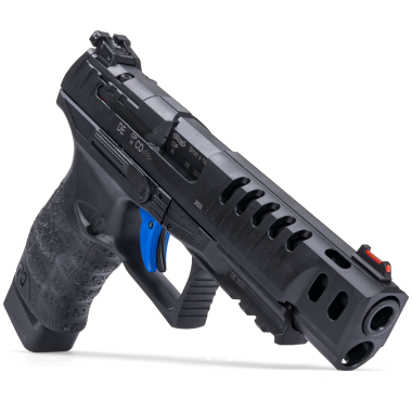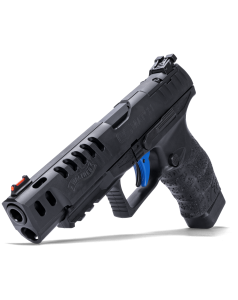 Le Walther Q5 Match Champion en calibre 9x19 est un pistolet de compétition haut de gamme, conçu pour la précision et la performance. Version OR (Optics Ready), il comprend trois interfaces interchangeables pour le montage de viseurs points rouges compatibles Trijicon, Leupold et Docter/Meopta. La hausse LPA réglable en hauteur et en dérive est montée sur l'interface d'origine, et le guidon LPA est équipé d'une fibre optique pour une visée rapide et claire.