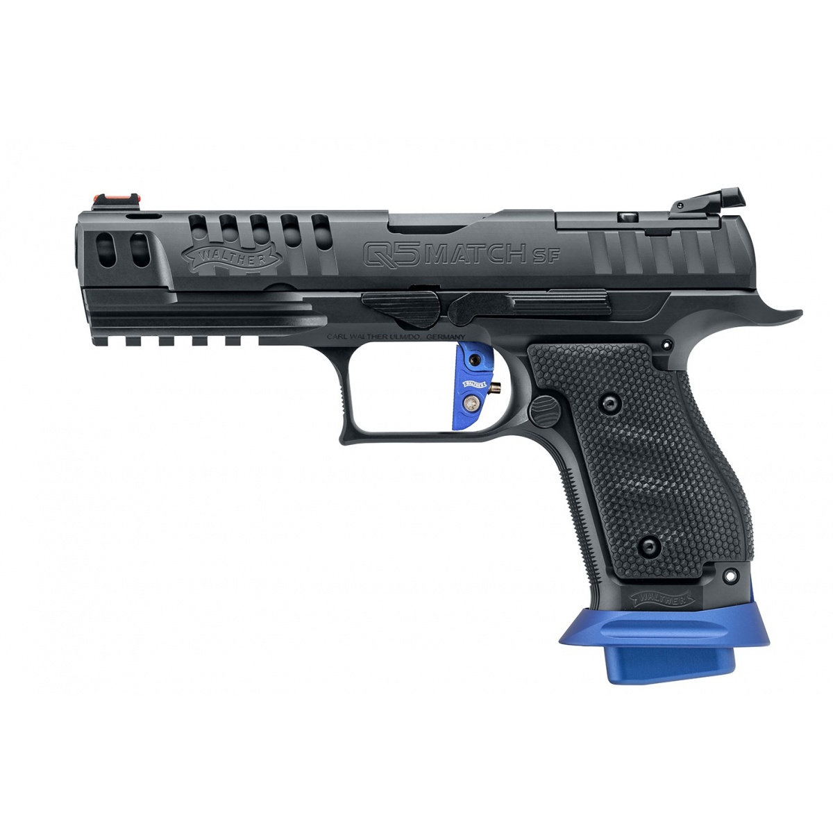 Le Walther Q5 Match SF Expert en calibre 9x19 est un pistolet haut de gamme pensé pour les tireurs exigeants. Doté d'une carcasse en acier, il dispose d'une course et d'un reset de détente réglables, ainsi que de deux profils de queue de détente (plate ou incurvée) pour un ajustement personnalisé.
