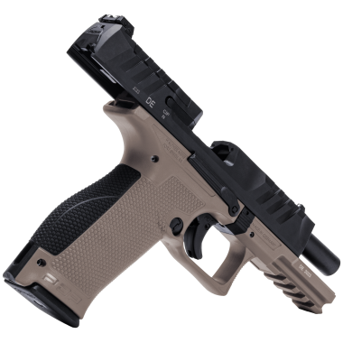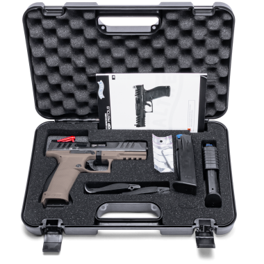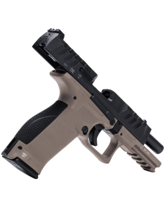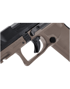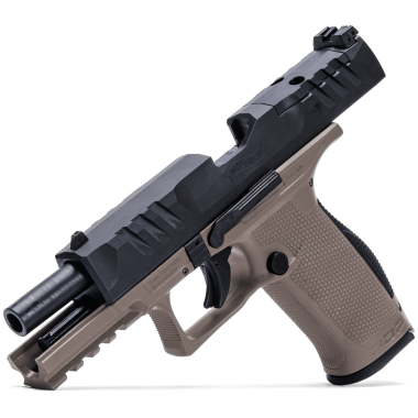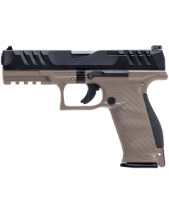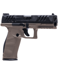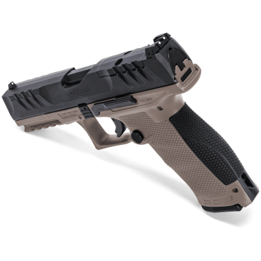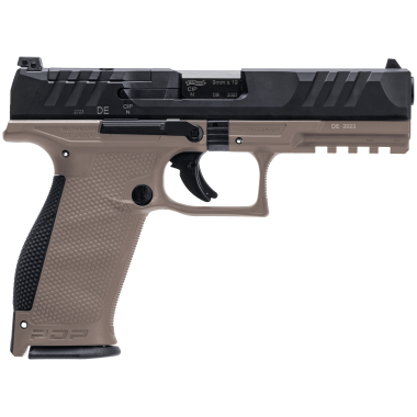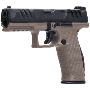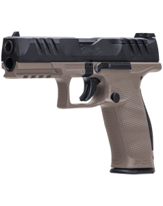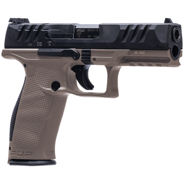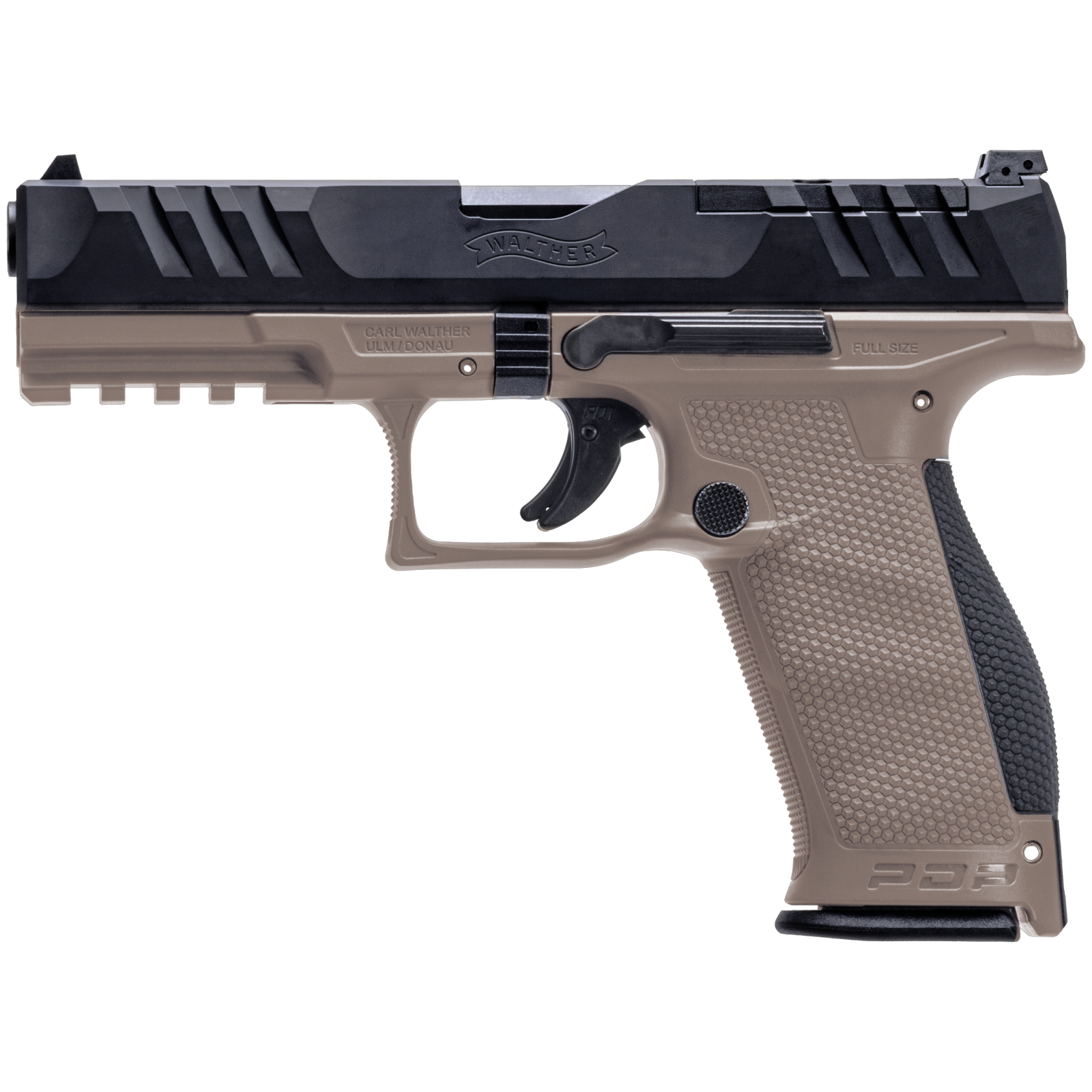 Le Walther PDP Full Size 4,5" FDE en calibre 9x19 s'inscrit dans la gamme de coloris proposée par Walther suite au succès du PDP. Cette version propose une carcasse couleur Flat Dark Earth (FDE) associée à une culasse, un canon et des commandes noirs, créant un contraste visuel marqué et contemporain. Walther propose trois coloris de carcasse pour cette série : OD Green, Tungsten Gray et Flat Dark Earth. Cette déclinaison Full Size avec glissière de 4,5" conserve les qualités ergonomiques de laplateforme PDP et une capacité de 18 coups.