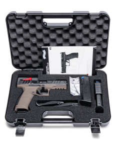 Livré avec deux chargeurs de 18 coups et trois grips arrière interchangeables (S/M/L).