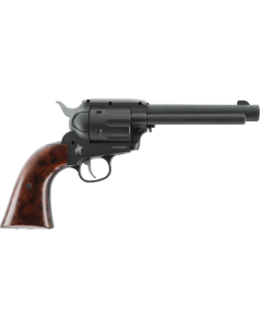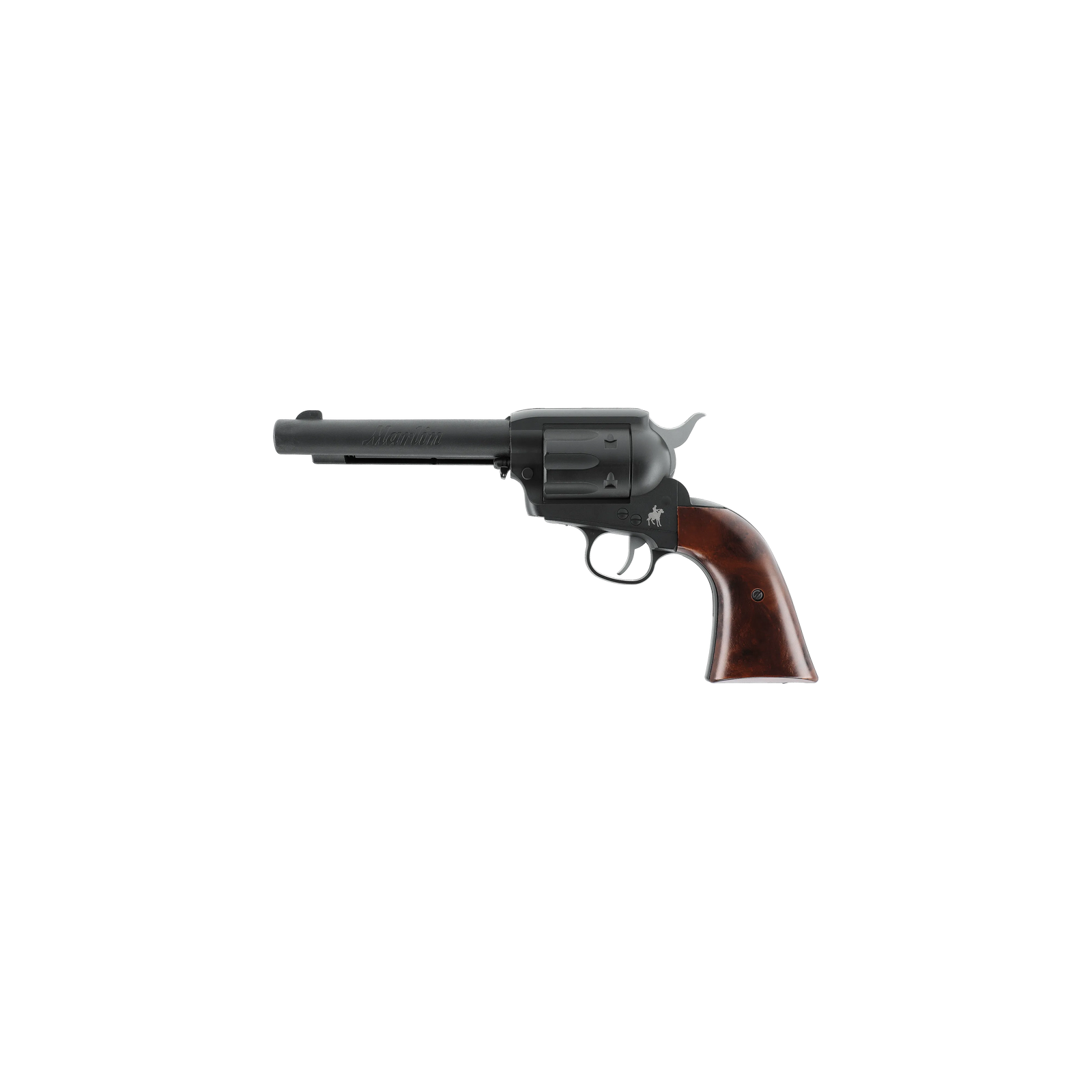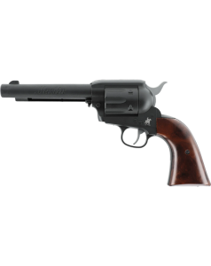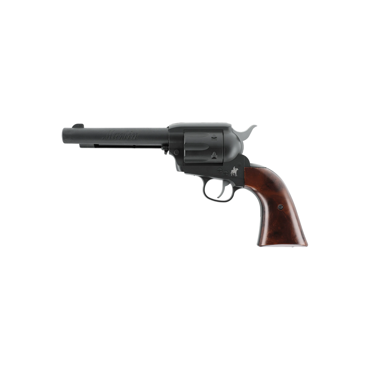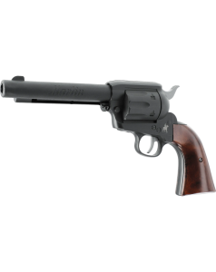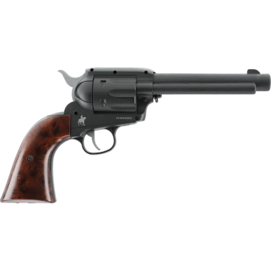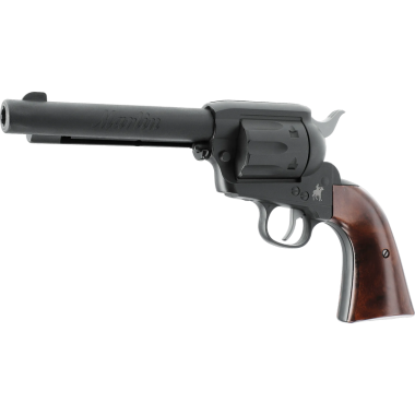 Le Marlin Revolver en calibre 6 mm BB est une réplique airsoft CO2 qui associe une esthétique classique à une technologie moderne, conçue pour le tir de loisir. Son fonctionnement repose sur une capsule CO2 de 12 g logée dans la poignée. Les billes sont alimentées depuis un chargeur tubulaire de 13 coups sous le canon. Léger grâce à son corps en polymère, ce revolver permet d'atteindre environ 130 tirs avec une seule capsule CO2. La finition noire mate et les plaquettes de crosse à l'aspect bois avec écailles renforcent son style western.