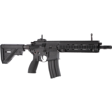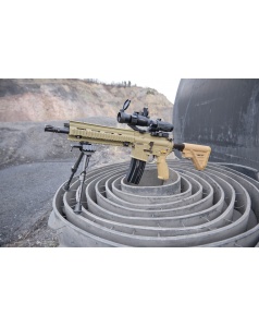 Cette version Sportsline avec corps en polymère offre un excellent compromis entre réalisme et efficacité sportive, pour un poids contenu d'environ 2300 g adapté aux parties prolongées. Elle est équipée d'une gearbox ECU avec fonction de diagnostic visuelle pour le contrôle de l'état de la réplique et de la batterie LiPo. Le garde-main quad rail Picatinny permet le montage d'accessoires. La crosse télescopique réglable sur cinq positions et la hausse réglable et amovible complètent l'équipement. Chargeur MidCap 160 billes et filetage de bouche M14x1 CCW pour accessoires compatibles. Compatible batteries LiPo type B et D.
